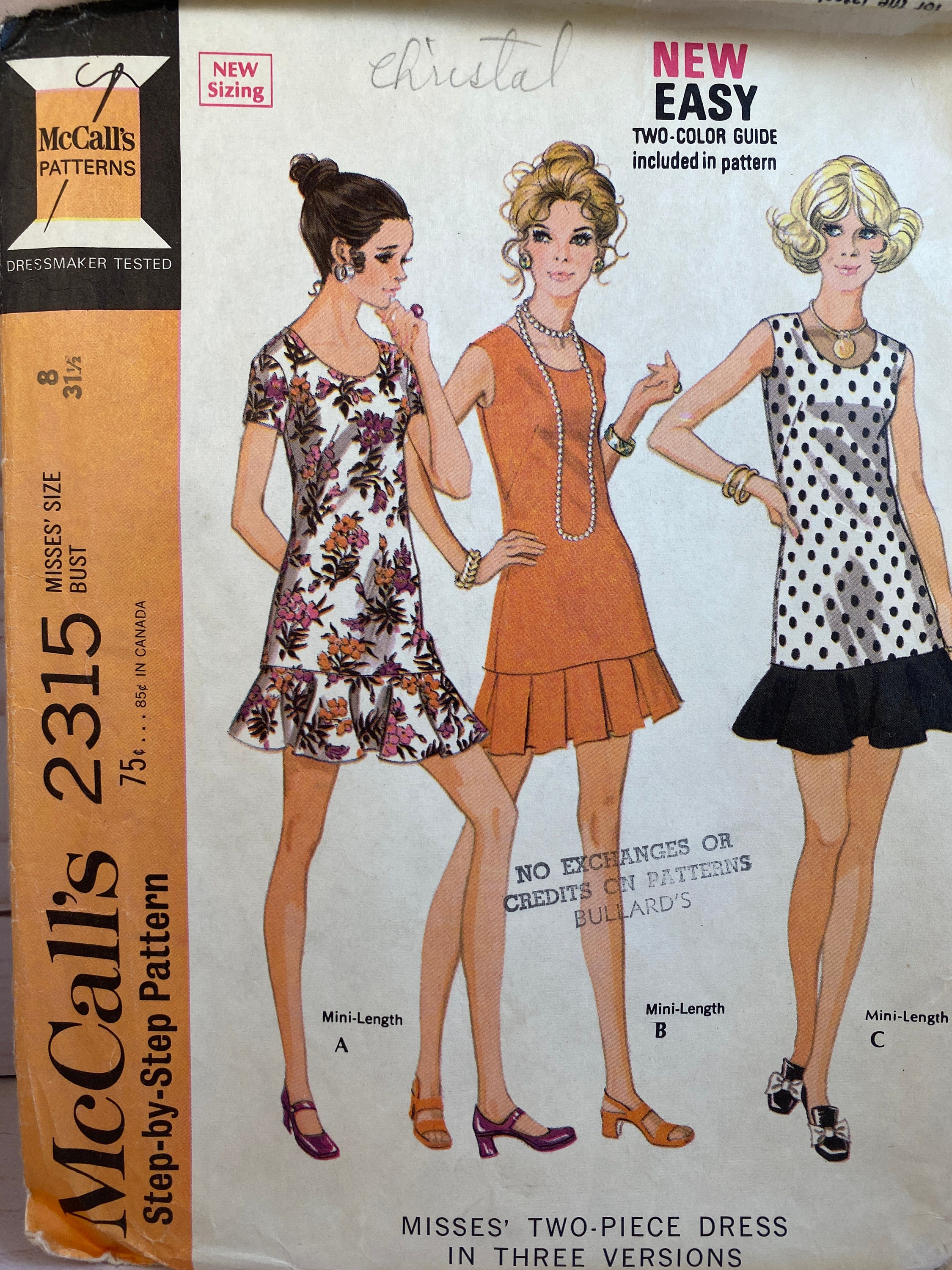 70s Two Piece Dress Three Versions Mccall S 2315 Sewing Etsy